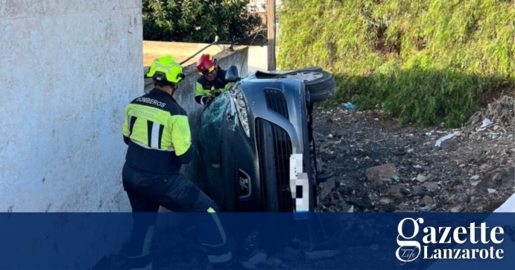 Fire fighters were called to the José Saramago roundabout in Tias after reports of a car leaving the road this